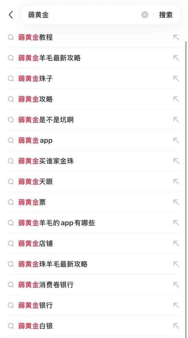 在社交平台搜索“薅黄金”,则会自动跳出“教程”“攻略”等词条。