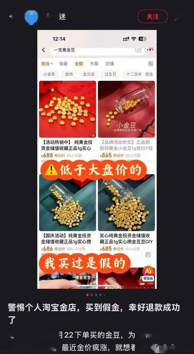 只是攒金也有风险,消费者需要找到靠谱的店铺购买黄金,不然费劲攒到的金珠有可能是假货,后续维权退货也很糟心。
