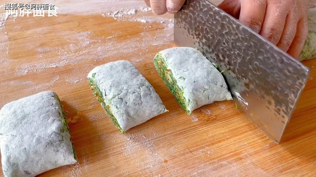 虽然颜色不是很翠绿,但菠菜卷的口感还是很能打、很棒的。吃起来筋道又柔软,加入葱花后,层次多,还带着葱香味。