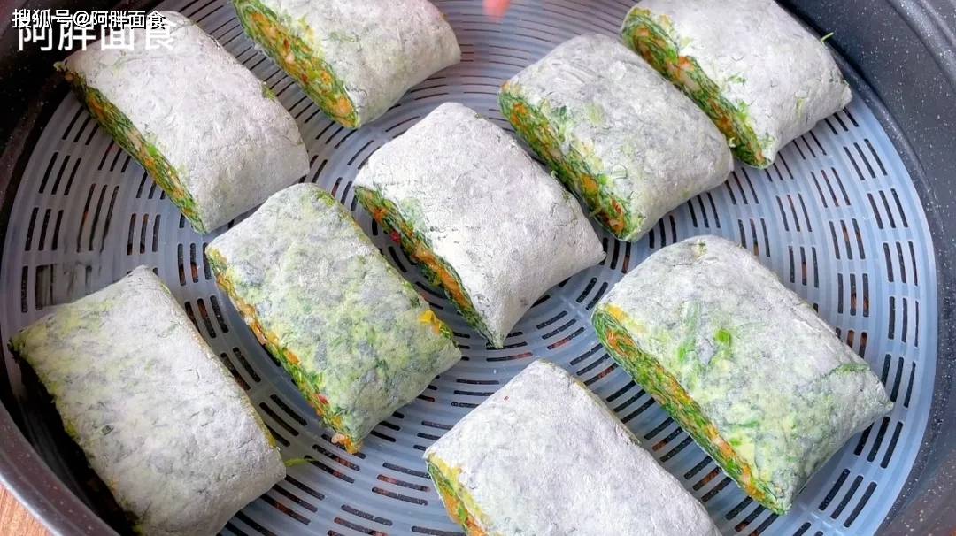 9、因为做的不是发酵面食,所以切好后,可以直接放入笼屉蒸,水开上锅,开大火蒸8-10分钟。如果卷的厚,蒸的时间就要长一点。